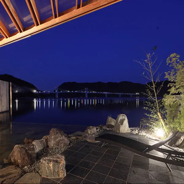 貸切風呂スタイルで気兼ねなく大パノラマの絶景インフィニティ風呂の至福の心地よさをご堪能ください。