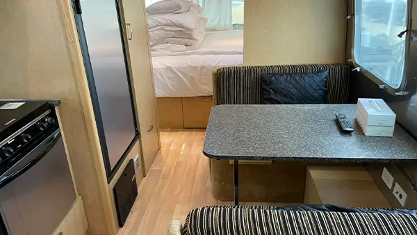 フォトジェニックな流線型のデザインのエアストリームは、大人定員4名までご利用いただけます。
